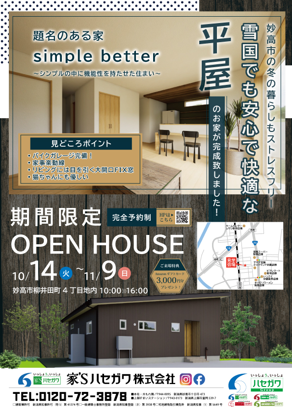 10/14(火)~11/9(日)妙高市柳井田町4丁目地内にて完成見学会を開催いたします!