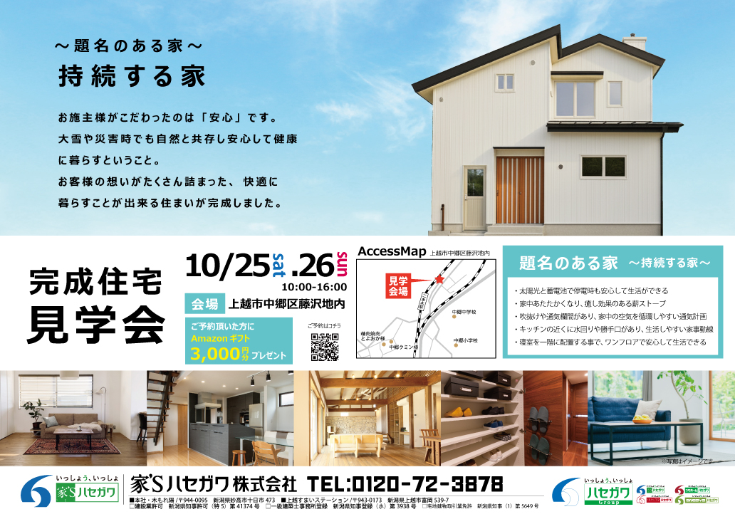 10/25(土)・26(日)上越市中郷区藤沢地内にて完成見学会を開催いたします!