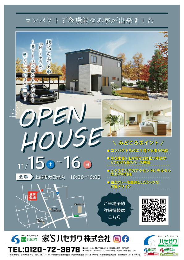 11/15(土)・16(日)上越市大日地内にて完成見学会を開催いたします!