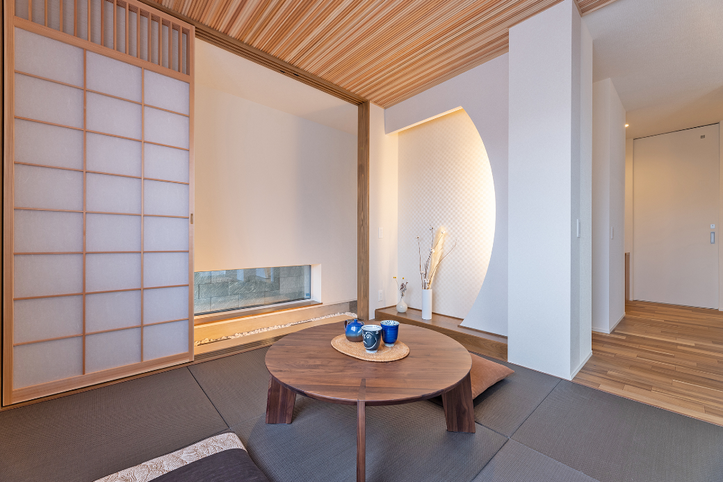 そして中庭を介して配置されたリビングと和室が、離れのように落ち着いた雰囲気を醸し出し、